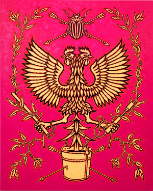 Його "геральдика" є своєрідним концентратом авторського і колективного бачення сучасної української духовної та матеріальної культури. У роботах циклу звучить повнота життя у всій своїй красі, часом смішній, часом величній, а часом моторошній. Це дзеркало, яке іноді, навіть з дещо холодною точністю, констатує всі протиріччя нашої української буденності, відображає парадоксальність буття, але водночас і демонструє її різноманіття і багатоликість. Симетрична врівноважена композиція використовується автором як символ протистояння хаосу, як втілення дуалізму життя і різних шляхів його пізнання.