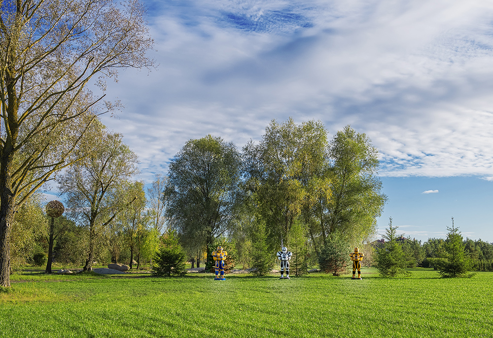 Roman Minin has been working on his Miner Rugby Player series since 2007, creating only one sculpture per year. Within the framework of this project, the artist engages with the image of a player, which is embodied as a steadfast tin soldier figure, a generalized chess pawn, a faceless cog. The player’s plastic form though seems to be brimming with monumental beauty and artistic energy. The artist concentrates the essence of these two masculine professions in one figure. The sculpture is an allegory of the effect of geopolitics on Ukrainian culture and mentality.
