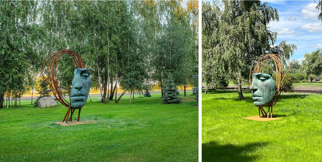Insight explores the inner world of a human being, all the never-ending emotions and thought processes hidden behind the external façade. The metal curls into circles, denoting the search for answers to deep internal questions, the procession of conscious, partly conscious or altogether obscure thoughts and images. Their movement is unpredictable and chaotic, they come in snippets or get tangled into whirls. There comes a moment though when thoughts become bright and clear, even if nobody can predict when that time might come. The sculpture documents this process of reaching clarity that comes with that moment of enlightenment. The expression of the character’s face shows concentration and focus necessary to plunge into the world of one’s own thoughts in search of answers. The expressive texture of the bronze surface looks like rain rills left by the flowing water, which symbolizes the flow of time and experience that comes with looking intensely inwards through creation or embracing emotions. The texture gives the sense of temporarily, stressing the stretch between the beginning of the thought’s course and its finale.